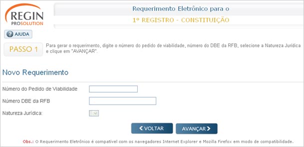 Para gerar um novo requerimento eletrônico o solicitante deve preencher os seguintes campos: